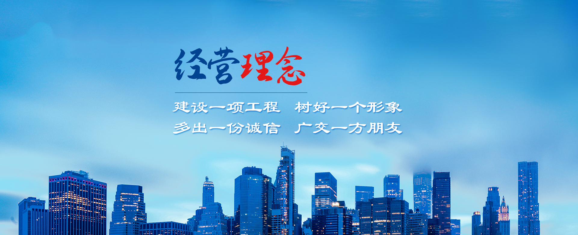 公司以建造合格建筑產(chǎn)品、助力國(guó)家建設(shè)為使命,以構(gòu)建幸福企業(yè)為愿景。公司深知助力國(guó)家建設(shè)為使命所擔(dān)負(fù)的責(zé)任,故以“如履薄冰、如臨深淵、高調(diào)精細(xì)做事、低調(diào)謙虛做人”為工作理念,建立了完善的管理制度和質(zhì)量保障體系,以人為本,構(gòu)建和諧環(huán)境。公司牢固樹(shù)立安全意識(shí)、文明意識(shí)、質(zhì)量意識(shí)、環(huán)境意識(shí)和精品意識(shí)。在公司質(zhì)量管理過(guò)程中貫徹“雙百”方針:即工程合格率100%,客戶(hù)滿(mǎn)意率100%。以“建設(shè)一項(xiàng)工程,樹(shù)好一個(gè)形象,多出一份誠(chéng)信,廣交一方朋友”為公司經(jīng)營(yíng)理念。